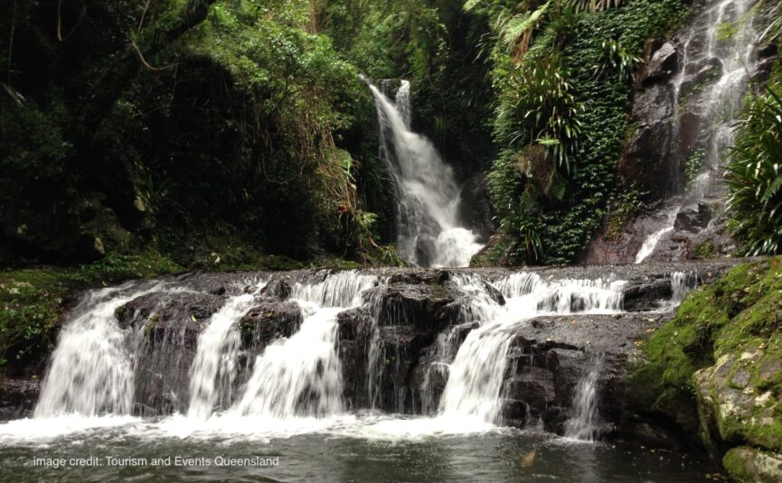 Choose your own adventure for the next portion of your day… Stay local and be led to secret rock pools and waterfalls, or take a drive to the lush landscapes of the Gold Coast hinterland for a relaxed stroll that leads you to the tranquil sights and sounds of Curtis Falls and more.