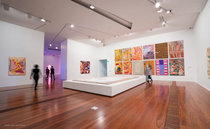 In the afternoon, shift into the heart of the city. Visit the National Gallery of Victoria: Australia (NGV Australia), home to an extensive collection of Australian art spanning time and medium. You might also explore Craft Victoria, a leading institution for contemporary craft and design, showcasing ceramics, textiles, jewellery and more. Round out the day with a visit to one of the country’s most respected First Nations art spaces, where you’ll find significant works and the opportunity to better understand the cultural stories, histories and artists behind them.